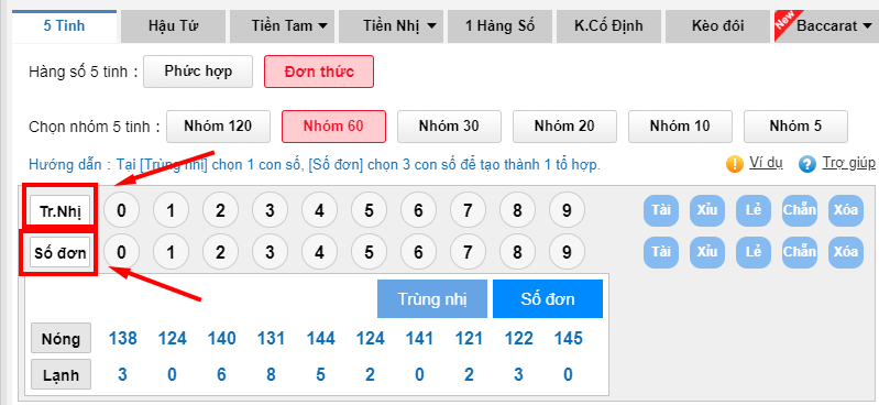 Trong dãy số trùng tam. Thì trong dãy số bạn chọn ít nhất phải có 1 con số được lặp lại 3 lần