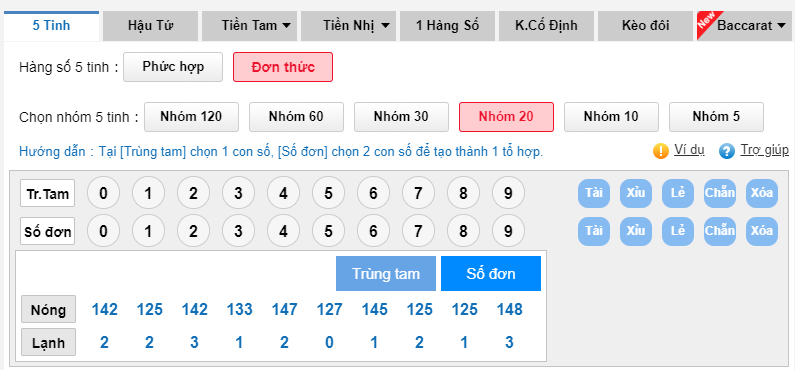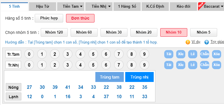 Ví dụ : bạn đặt cược dãy số trùng tam là : 03512